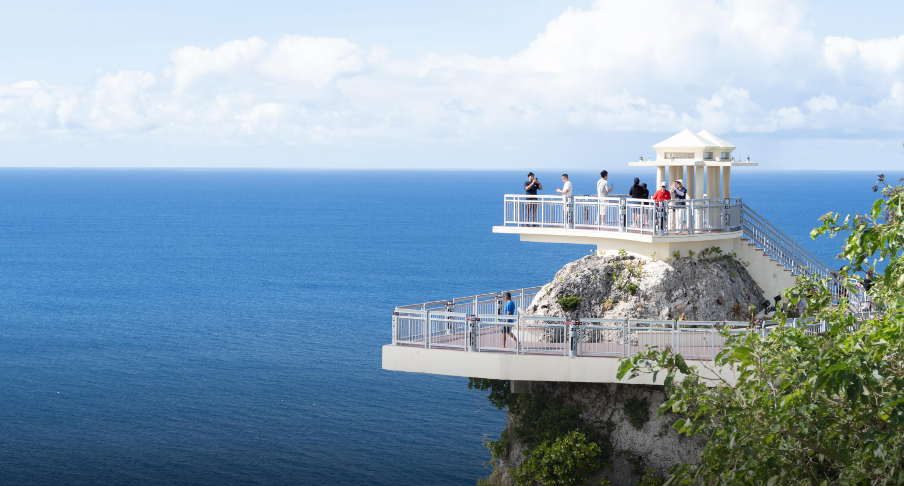 グアムの北端にそびえる恋人岬は、切ない恋の伝説が残るロマンティックな場所。昼間は太陽の光に照らされた鮮やかな“グアムブルー”が広がり、爽快なパノラマを楽しめます。夕暮れになると、水平線に沈む太陽が海と空を黄金色に染め上げ、忘れられないロマンティックなサンセットに。どの時間帯に訪れても、心に残る景色に出会えるスポットです。